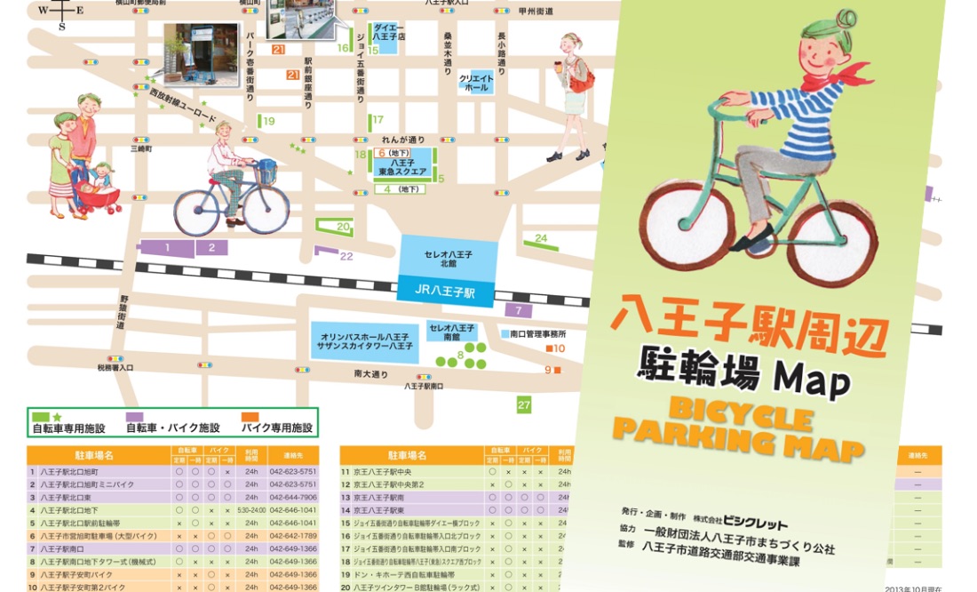 ビシクレットさんの柔軟な発想で出来たのがこの駐輪場マップです。駐輪場の場所が分かりづらいという市民の声と案内できるツールが欲しいという放置自転車指導員の声に応えて、八王子駅周辺の公共施設や各駐輪場などで手に入れることができるようにしています。おかげでどこに止めたらいいのというお問い合わせやクレームもかなり少なくなりました。放置自転車対策は、絶対に0になるということは無いですが、行政としては仕上げの最終段階に入った感じがしております。